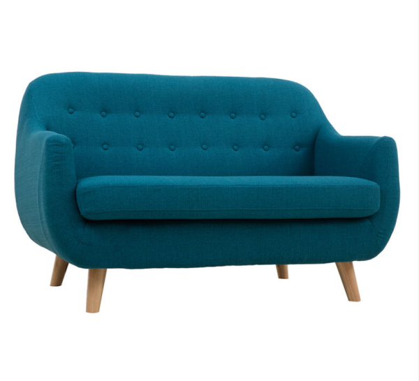 Le canapé 2 places Jo en location chez Comunoeil Deauville & Paris est un canapé scandinave moderne en tissu muni d'une assise moelleuse. Original, chic et élégant, ses pieds en bois posés en diagonal, typique des meubles scandinaves, apportent à ce canapé le design si apprécié des meubles nordiques.