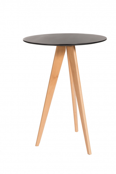 Table haute en bois et plateau MDF bois laqué.